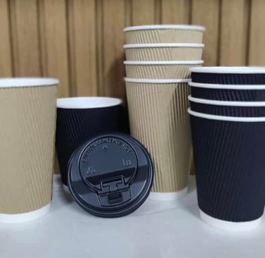 Disposable Cups for Tea & Coffee Durable, food-grade cups for hot and cold drinks. Made from quality paperboard or PP with leak-proof PE/PLA lining. Heat-resistant and rigid. Available in 150 ml, 200 ml, 250 ml sizes with optional lids for takeaway.